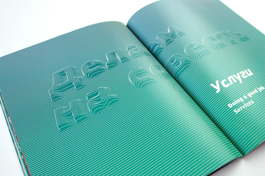 So we put the water flow pattern on every detail (from paper clip to the factory logo) to show unique Wasserkraft Büro identity style. Water flows through the logotype the same way water flows through the equipment that Wasserkraft Büro installs. The company’s got the name which is best to denote its sphere of activity and accentuate that Wasserkraft Büro is an engineering bureau.